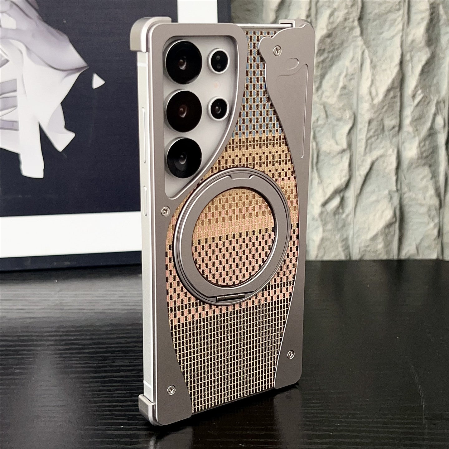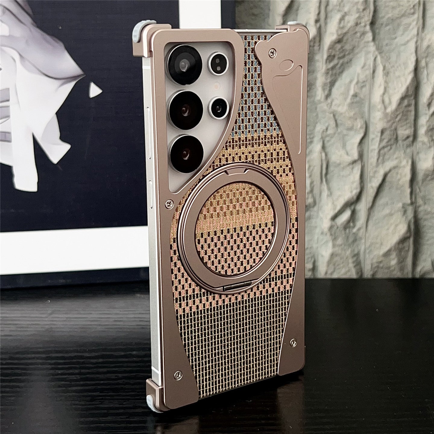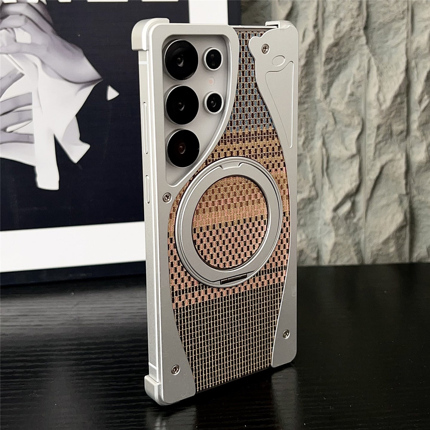 - Golden Silk Silver Brocade Material – Features an innovative composite material combining resin and glass fiber reinforcement. Inspired by traditional textile artistry, its back cover showcases a diagonal brushed texture with interlaced silver and gold threads, creating a dynamic visual effect under light. This material achieves a balance of lightweight design (reducing weight by 5-10g), enhanced durability, and resistance to impacts, while enabling diverse aesthetic finishes through advanced surface processing techniques.